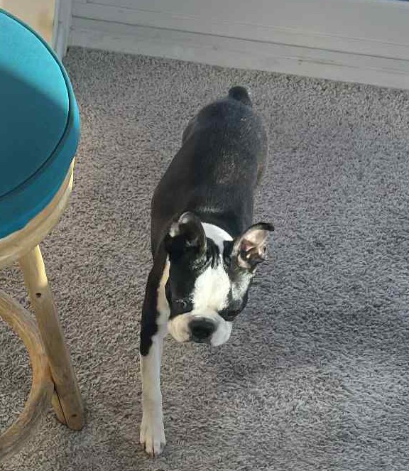 This is Eli. He's available to the right pet home now. He's 6 months old and is all up to date on his vaccinations including Rabies. Eli is working on housebreaking, walks on a leash, is crate trained and gives lots of kisses and loves belly rubs!